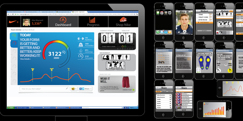 Deveoping digital sensing technology for high school football players, Colton found many opportunities within the $10 wholesale constraint. Building on the brand strengths of the Nike Fuelband and Nike+ Training systems, he chose to focus on measuring good form and techinal skills, preventing injury and providing a benchmark for players to share and compare statistics.